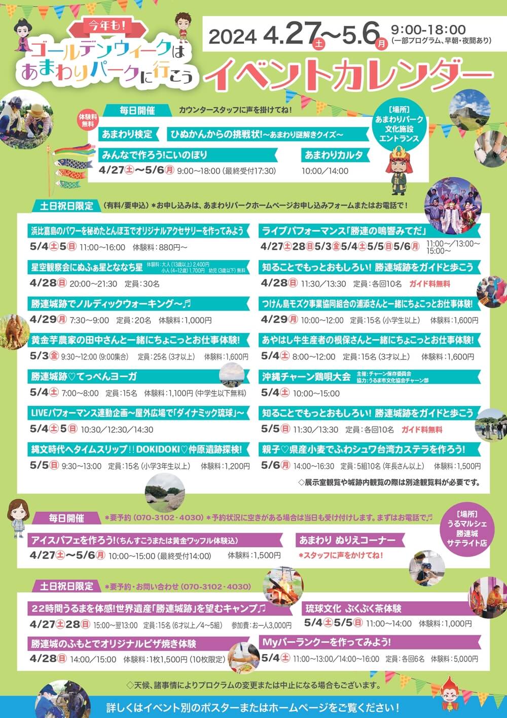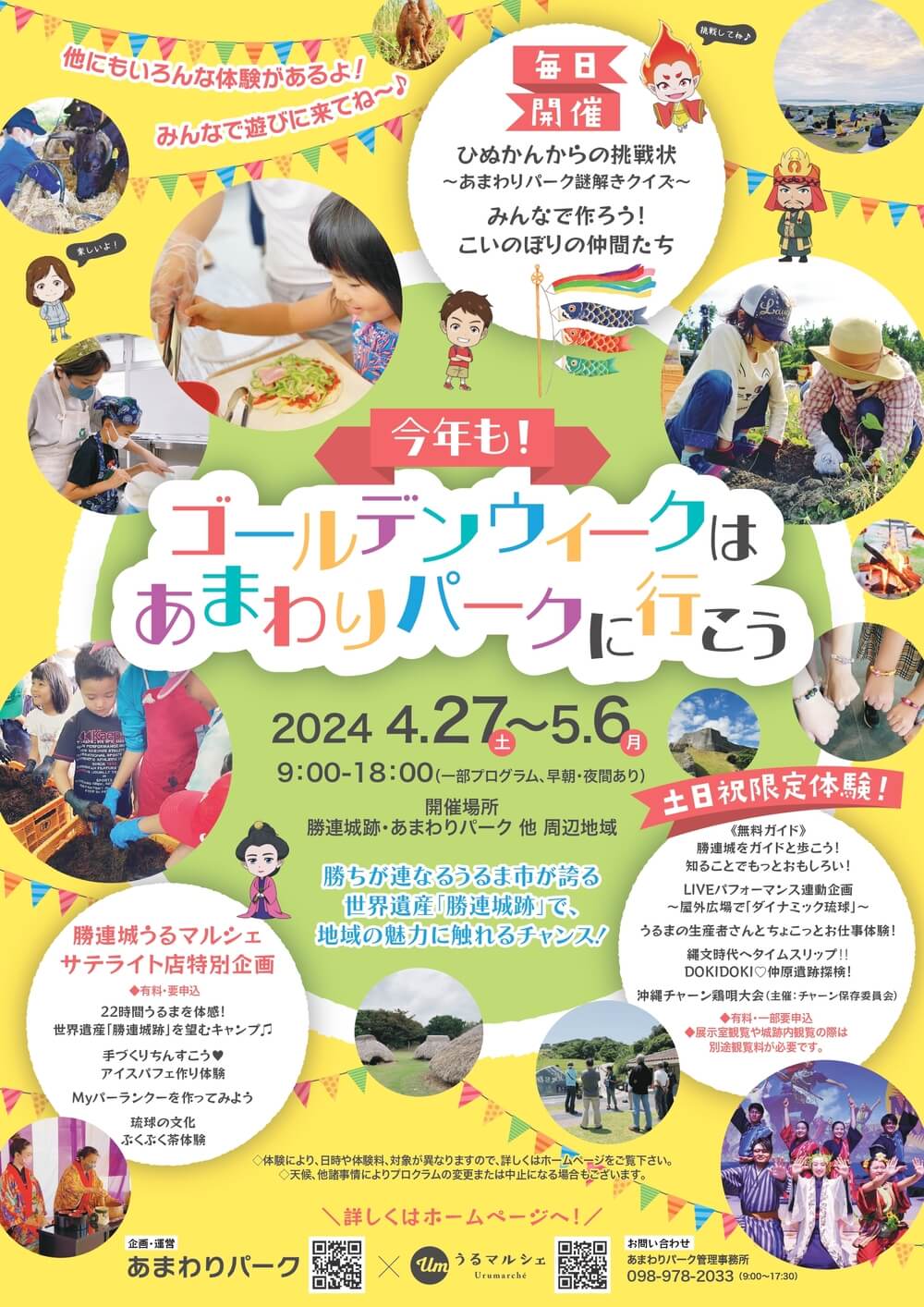 あまわりパークやこどもの日にちなんだ体験が楽しむことができ、「ひぬかんからの挑戦状~あまわりパーク謎解きクイズ~」や「みんなで作ろう!こいのぼりの仲間たち」など、入場料・体験料が必要ない無料のイベントも期間中に毎日開催される。