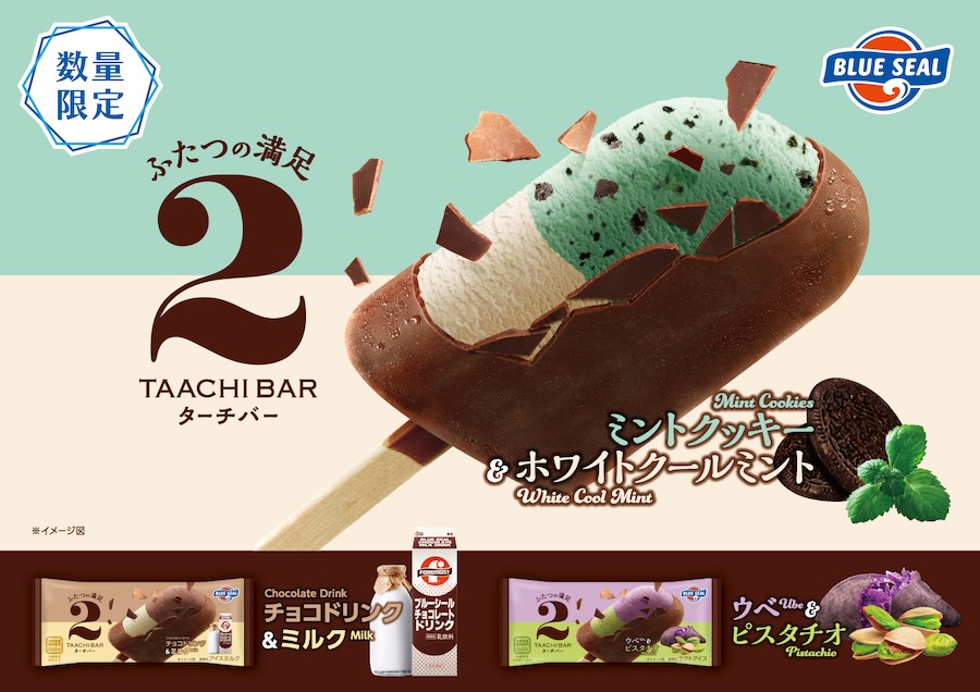 ブルーシールは2024年5月13日(月)から夏季限定で新商品「ターチバー ミントクッキー&ホワイトクールミント」を発売。一本のアイスバーで2種類のフレーバーが味わえる、ちょっと得した気分になれるターチバーシリーズ。今回は、ミント好きにはたまらない両方ともミント系フレーバーの組み合わせだ。