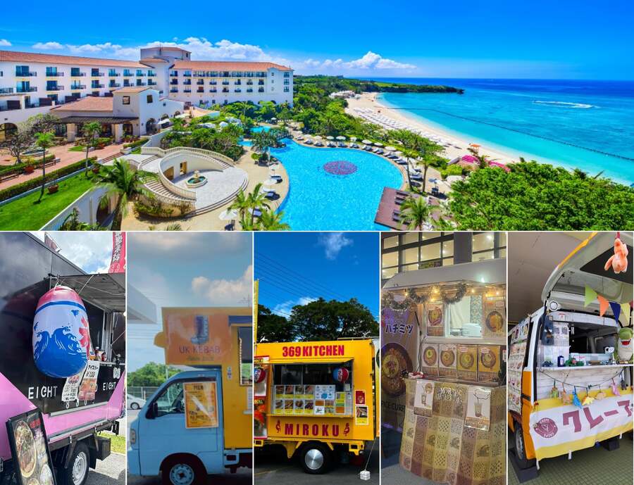 県内でも有数の透明度を誇るニライビーチが一望できる遊歩道は、景色を楽しむのにはもってこい。異国の雰囲気漂うホテルの敷地内で、海を見ながら食べるキッチンカーグルメは、きっと一味違うはず。
