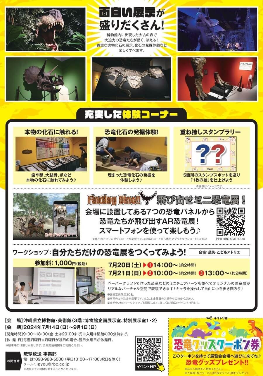 2024年7月14日(日)~9月1日(日)の期間中、那覇市にある沖縄県立博物館・美術館(おきみゅー)で「タッチ ザ ダイナソー 恐竜アドベンチャー展」が開催される。
