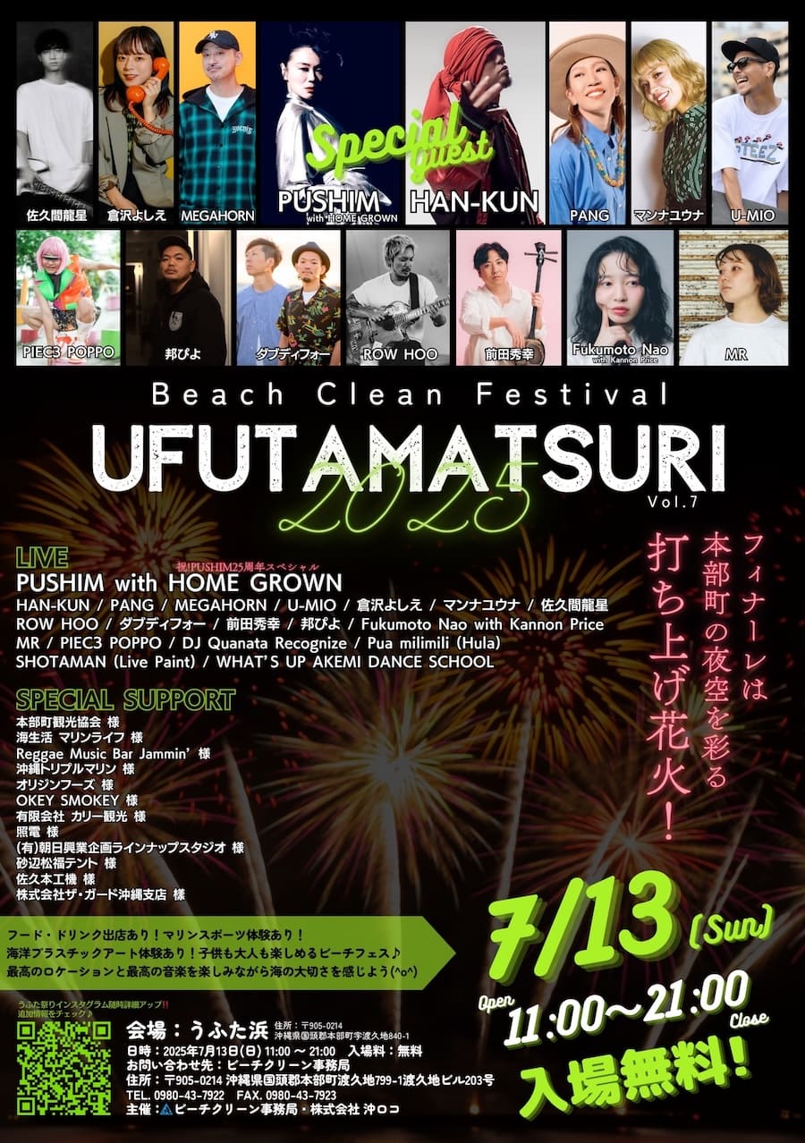 2025年7月13日(日)、本部町うふた浜にて「うふた祭り2025 ~Beach Clean Festival~」が開催される。入場は無料。