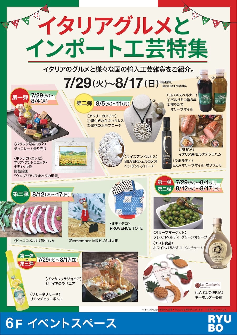 2025年7月29日(火)から8月17日(日)までの期間、デパートリウボウにて「イタリアグルメとインポート工芸特集」が開催される。