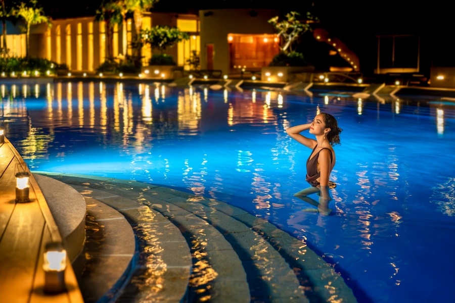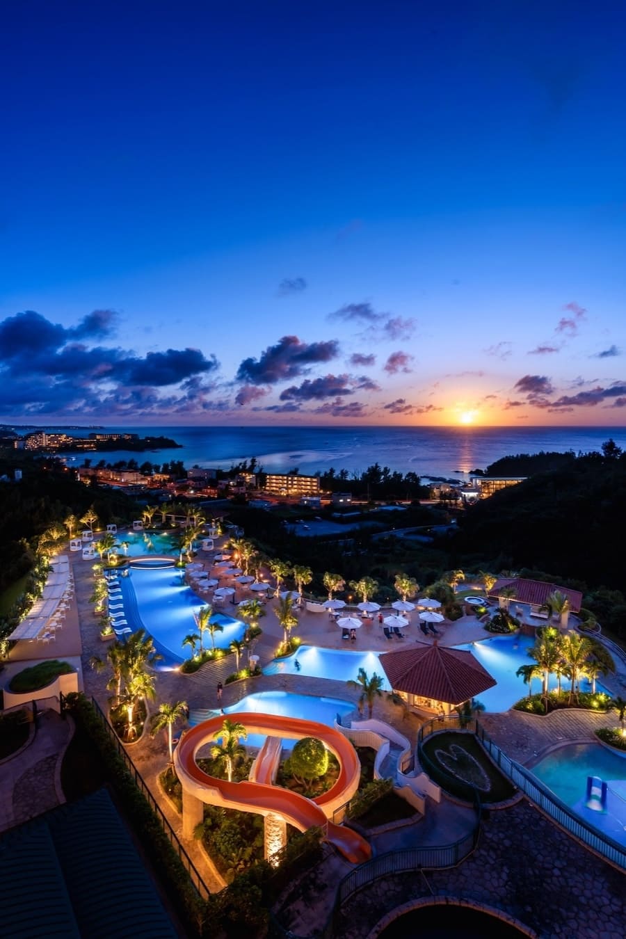 自然豊かな緑に囲まれ、夏の暑さから解放されるやんばるの夜。県内最大級のガーデンプールにはロングウォータースライダー、カバナや見晴らしの良いデッキエリアも備えている。ナイトプールは夜22時まで、プールサイドバーは23時までオープンしている。