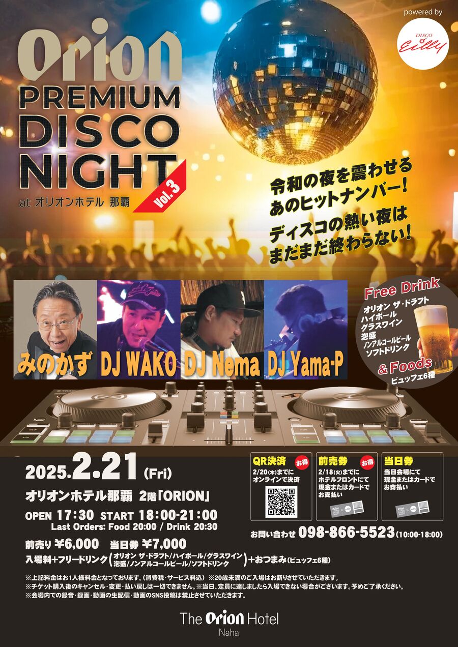 2025年2月21日(金)、那覇市にあるオリオンホテル 那覇にてディスコイベント「オリオンプレミアムディスコナイト vol.3」が開催される。