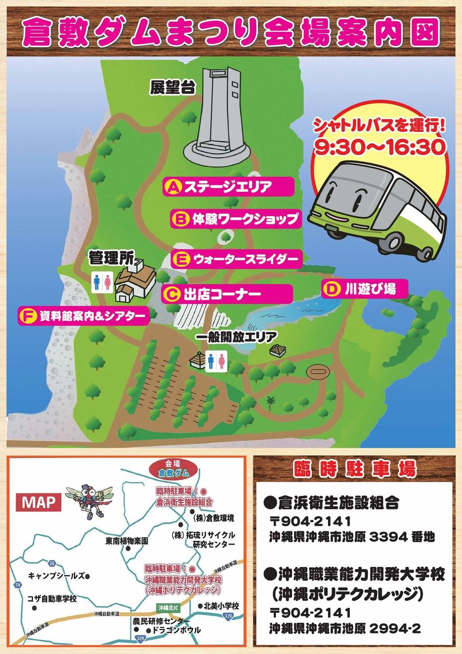 ※倉敷ダムまつり当日、倉敷ダム施設内には駐車場がありません。臨時駐車場からシャトルバスをご利用のうえ、お越しください。