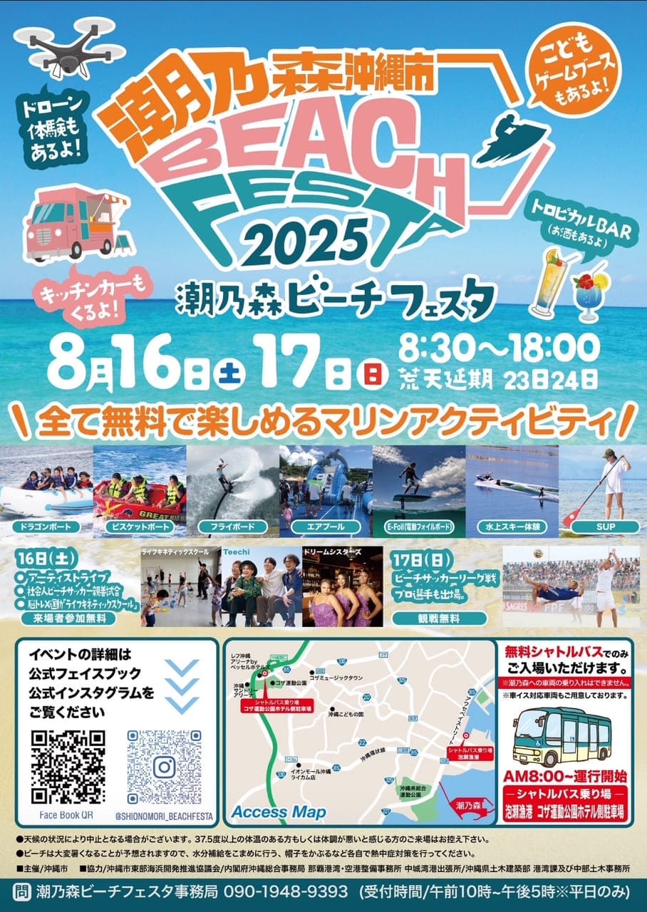 2025年8月16日(土)と8月17日(日)の2日間、沖縄市潮乃森のビーチで「潮乃森ビーチフェスタ2025」が行われる。