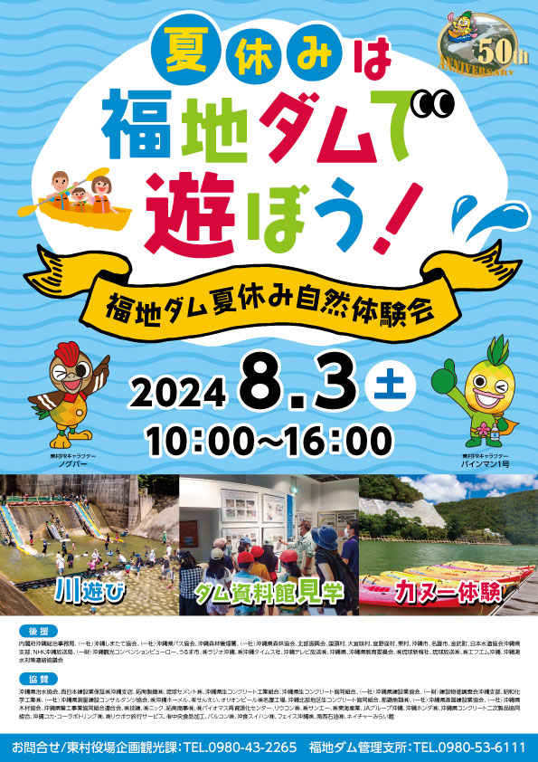 2024年8月3日(土)、沖縄県東村にある沖縄最大のダム湖、福地ダムで6年ぶりに「福地ダム夏休み自然体験会」が開催される。