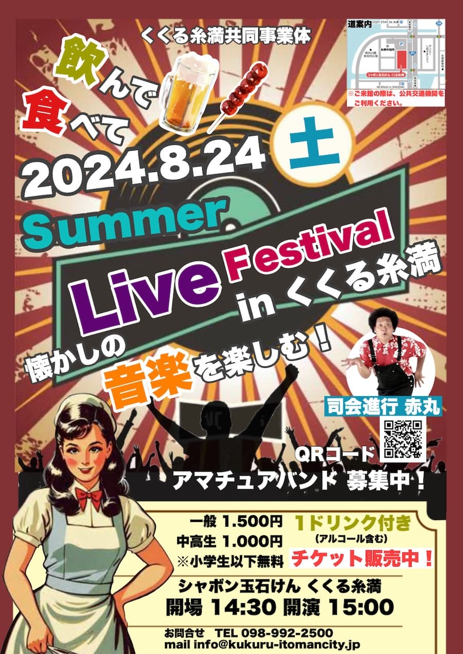 2024年8月24日(土)、シャボン玉石けん くくる糸満の大ホールにて「Summer Live Festival inくくる糸満」が開催される。