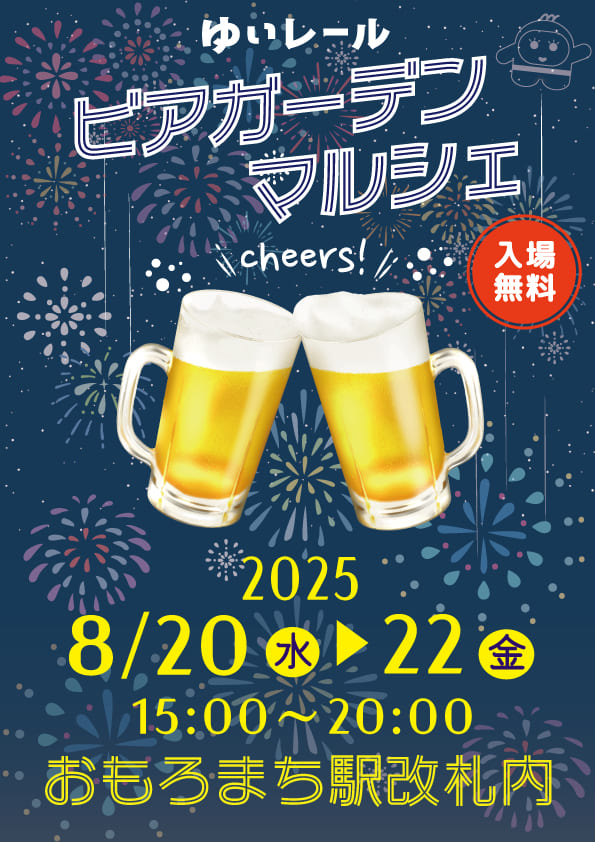 2025年8月20日(水)~22日(金)の3日間、ゆいレールおもろまち駅にて「ゆいレール ビアガーデンマルシェ」が開催される。