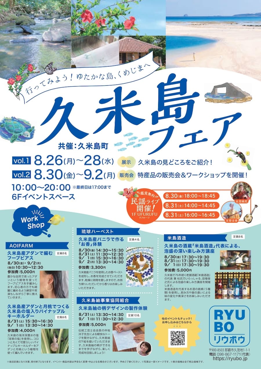 2024年8月26日(月)~8月28日(水)・8月30日(金)~9月2日(月)の期間、デパートリウボウにて「久米島フェア」が開催される。