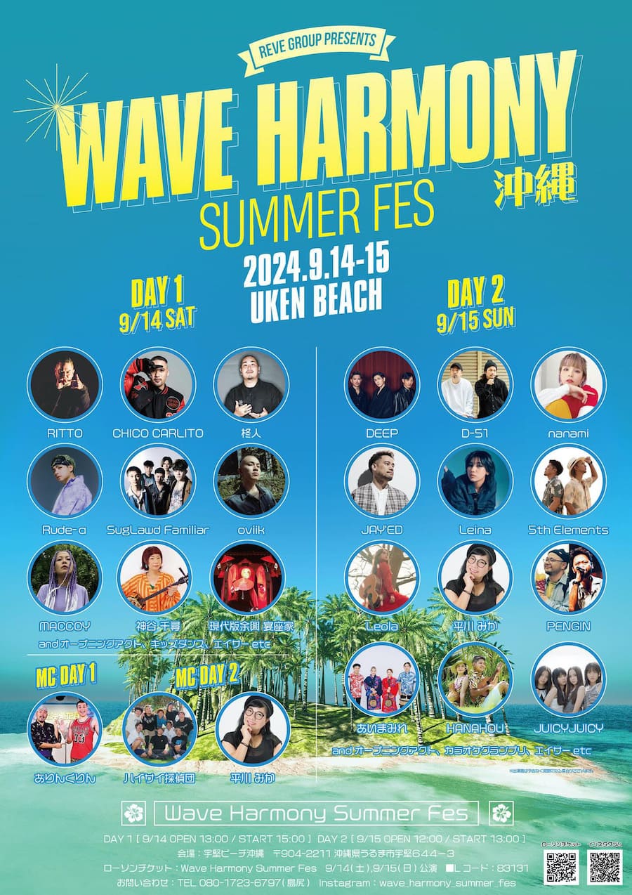 2024年9月14日(土)・9月15日(日)の2日間、うるま市にある宇堅ビーチにて「Wave Harmony Summer FES」が開催される。