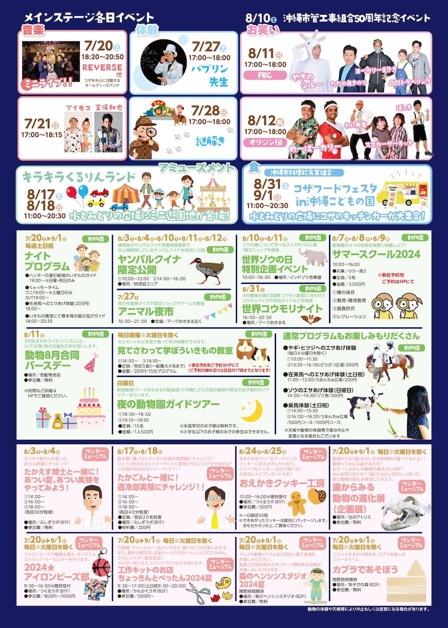 2024年8月31日(土)・9月1日(日)の2日間、沖縄こどもの国の水とみどりの広場にて「コザフードフェスタ in 沖縄こどもの国」が開催される。