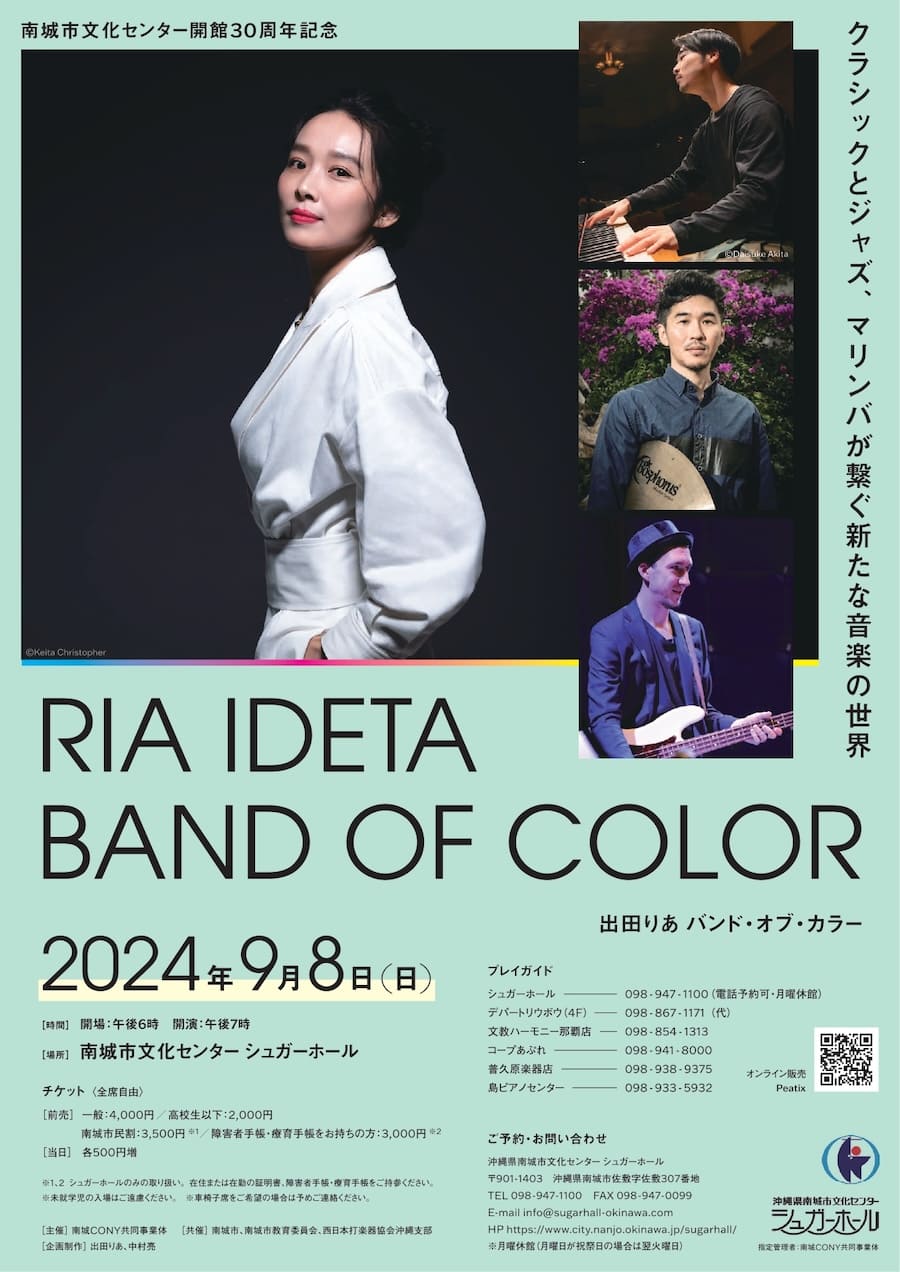 2024年9月8日(日)、南城市文化センターシュガーホールにて「RIA IDETA BAND OF COLOR」が開催される。