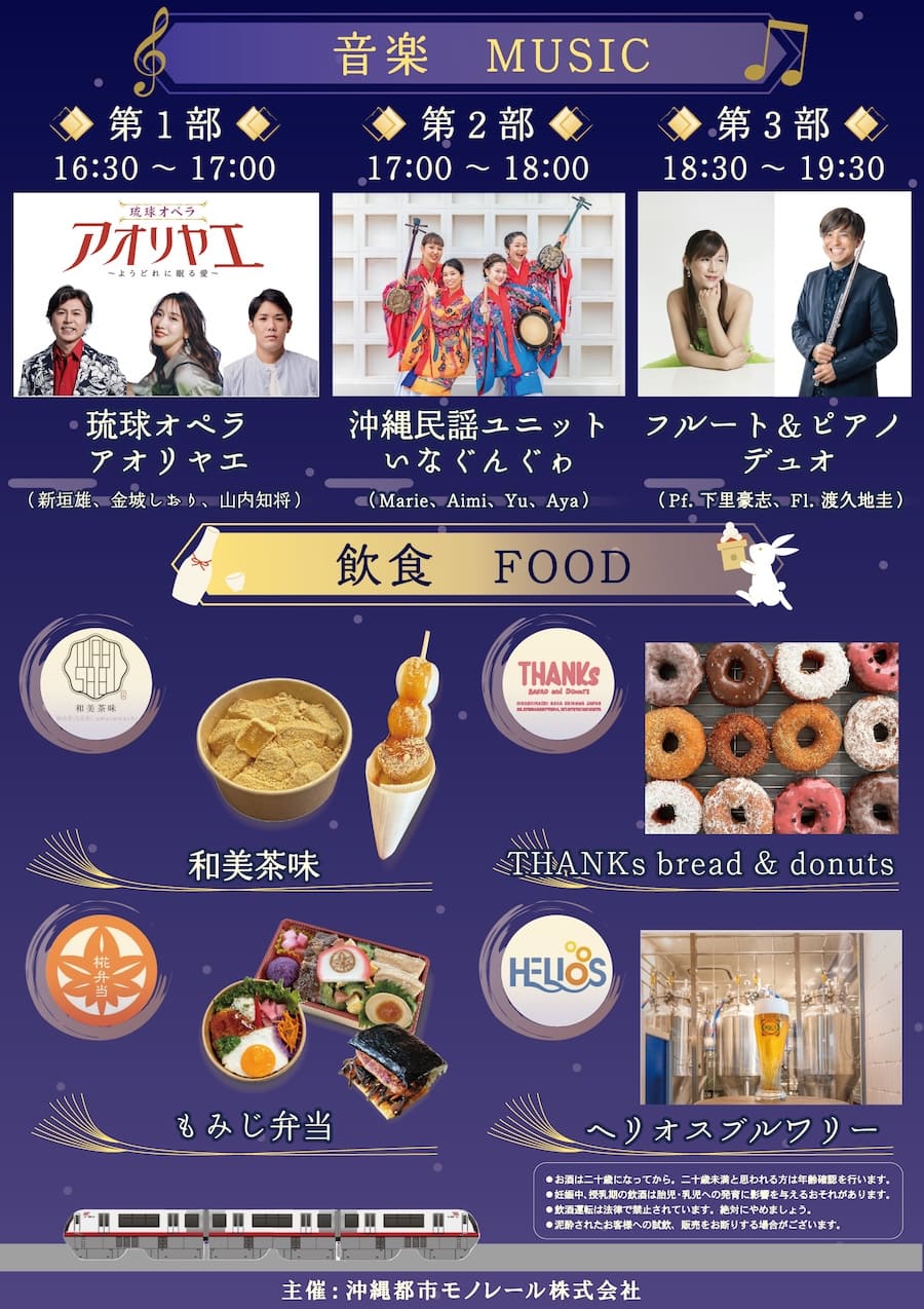 第1部から第3部まで、琉球オペラ、沖縄民謡、フルート&ピアノデュオと豪華な生演奏が楽しめる。駅構内で奏でられる音楽は、ここでしか味わえない特別な音色になるだろう。