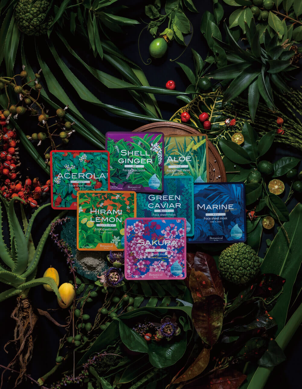 「Botanical」シリーズはその名の通り、”沖縄の海と太陽が育むネイチャーパワー”をコンセプトに、厳選した沖縄の植物や自然素材を配合したスキンケアライン。フェイスマスクは全7種類あり、さっぱりタイプからしっとりタイプまで、目的別のケア。