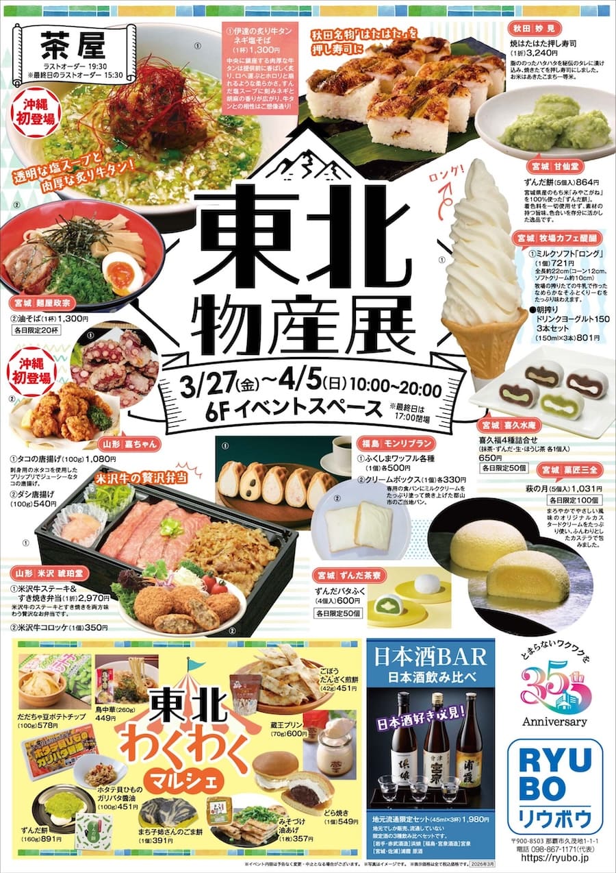 2026年3月27日(金)~4月5日(日)の期間、デパートリウボウにて「東北物産展」が開催される。