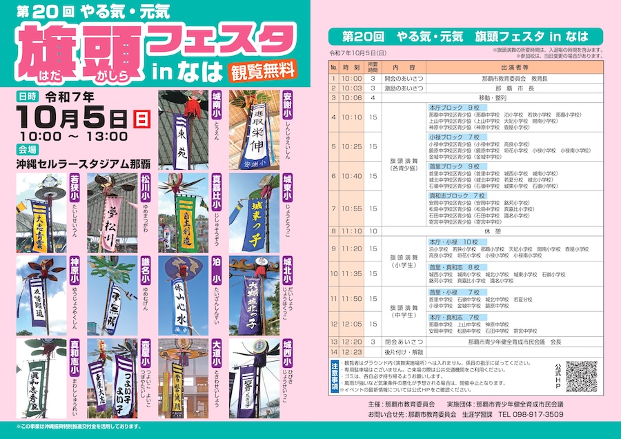 2025年10月5日(日)、沖縄セルラースタジアム那覇にて「第20回 やる気・元気 旗頭フェスタ in なは」が開催される。