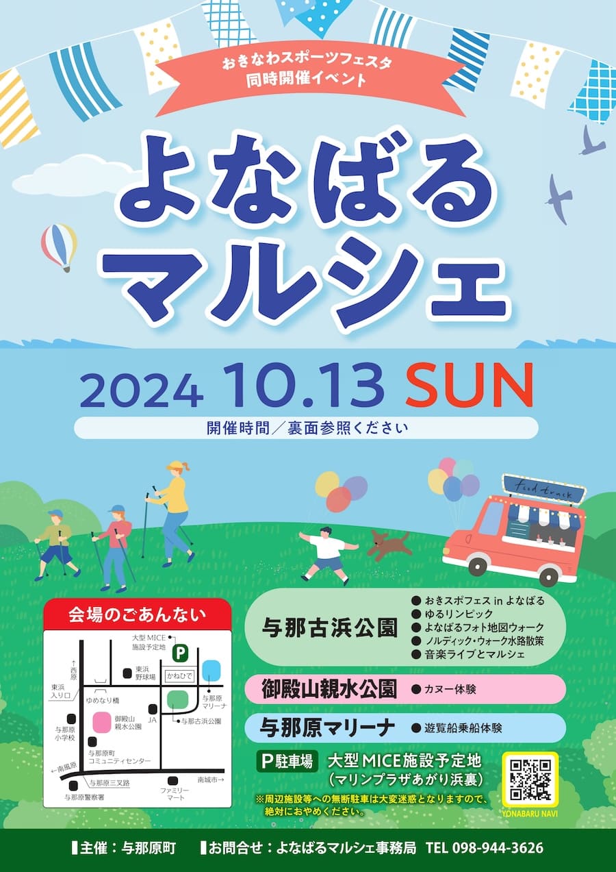 2024年10月13日(日)、 与那原町にある与那古浜公園などで「よなばるマルシェ」が開催される。
