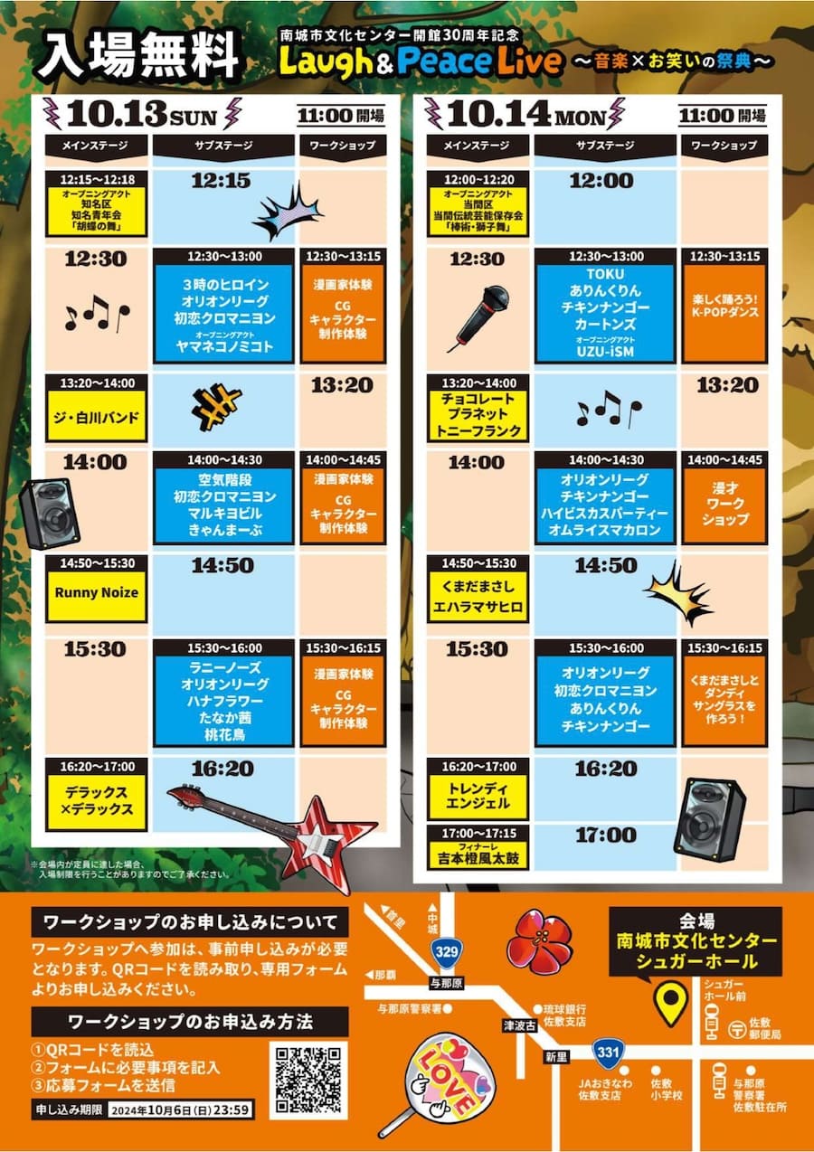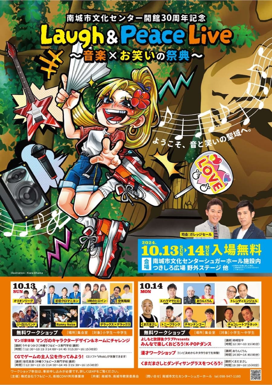 2024年10月13日(日)、14日(月・祝)の2日間、南城市文化センター開館30周年を記念して「Laugh & Peace Live ~音楽×お笑いの祭典~」が開催。