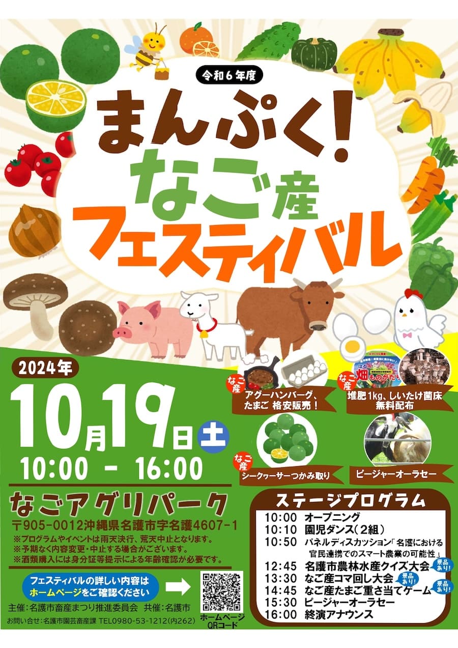 2024年10月19日(土)、名護市のなごアグリパークにて「まんぷく!なご産フェスティバル」が開催される。
