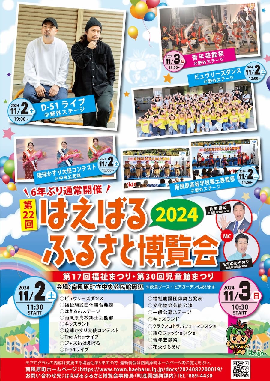 2024年11月2日(土)、3日(日)の2日間、南風原町立中央公民館周辺にて「第22回 はえばるふるさと博覧会」が開催。