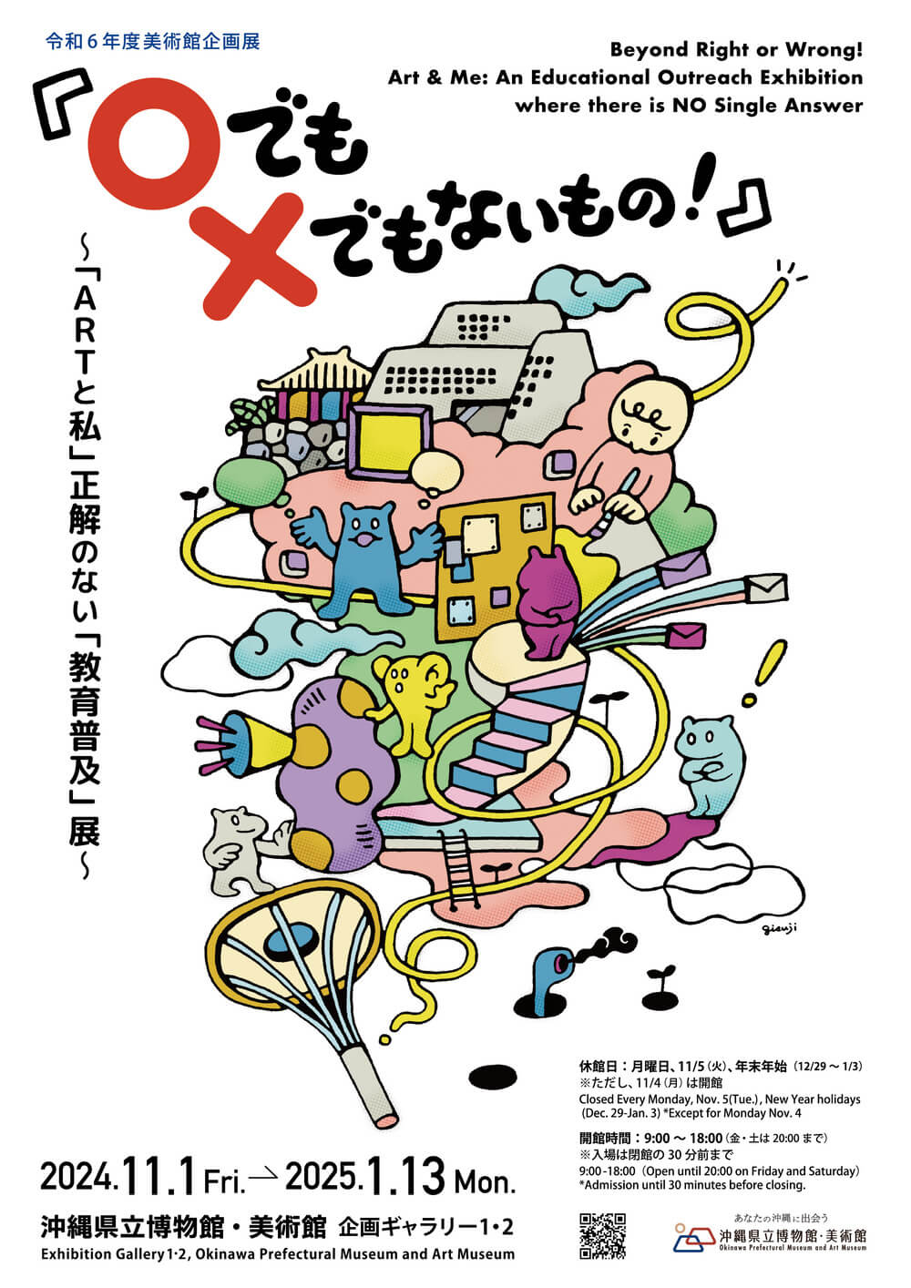 今回、2024年11月1日(金)~2025年1月13日(月・祝)まで沖縄県立博物館・美術館で開催される“『〇(マル)でも×(バツ)でもないもの!』~「ARTと私」正解のない「教育普及」展~”は、そんな疑問に寄り添えるよう、工夫が凝らされた展覧会だ。