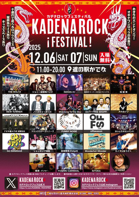 沖縄バンドオンリーのオキナワンロックの祭典「KADENA ROCK FESTIVAL 2025」に行って、ロックな音楽を聞きながらみんなで盛り上がろう。