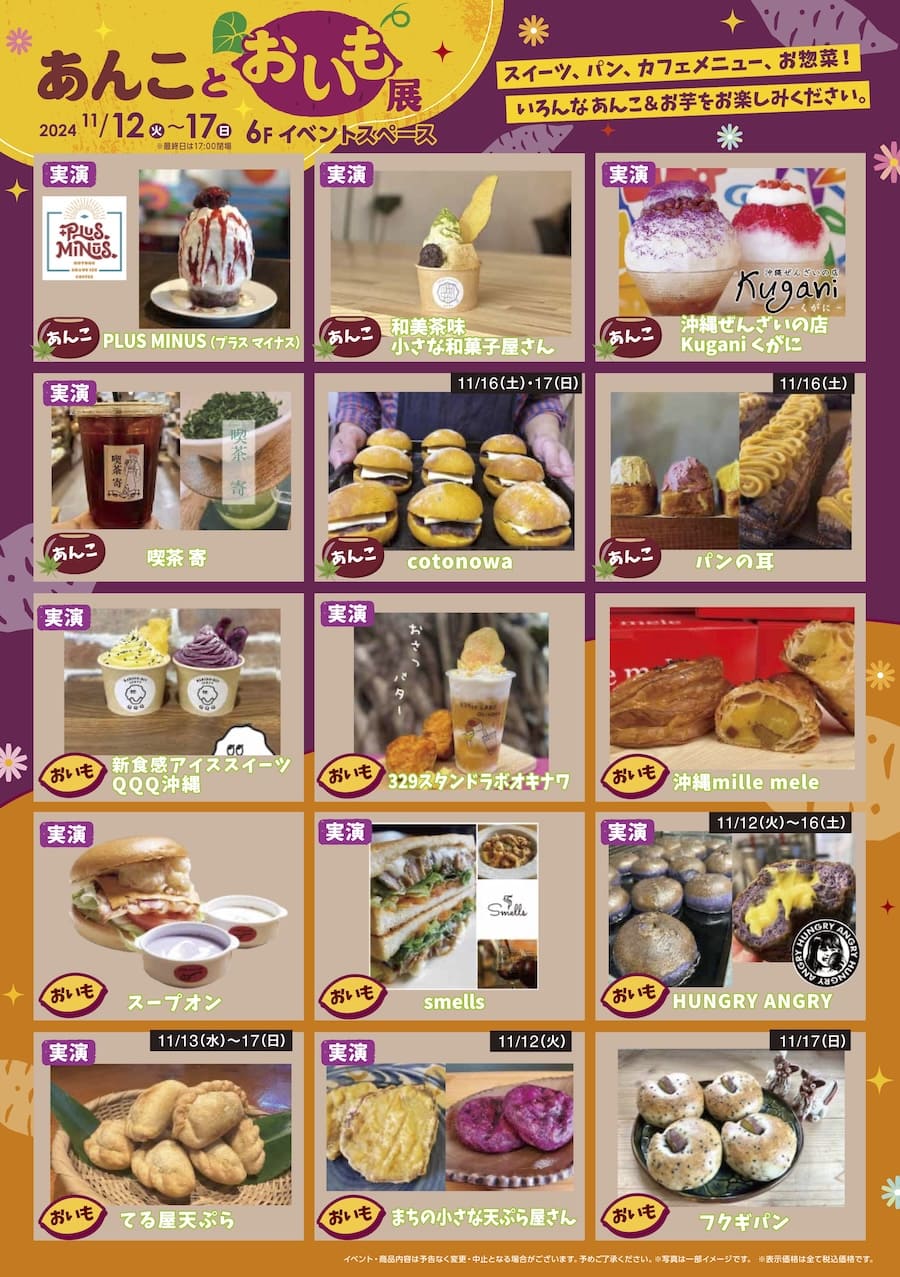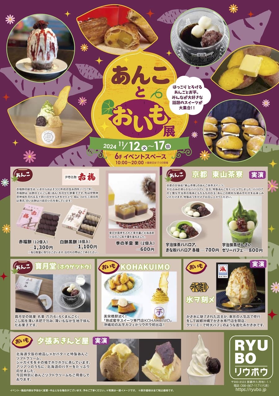 2024年11月12日(火)~11月17日(日)の期間、デパートリウボウにて「あんことおいも展」が開催される。