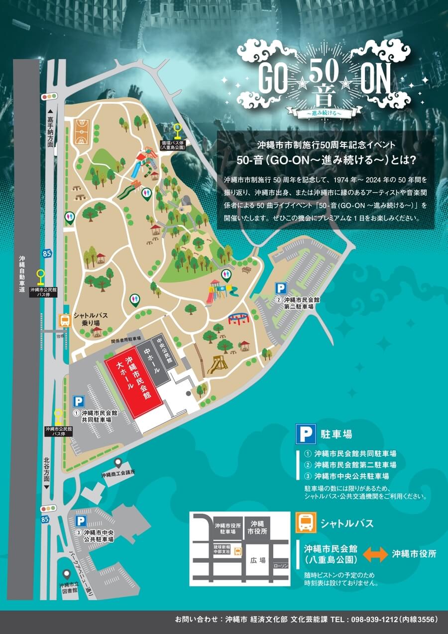 沖縄市市制施行50周年を記念して、沖縄市に縁のあるアーティストや音楽関係者が集い、1974年~2024年の50年間を振り返りながら50曲のライブパフォーマンスを披露。