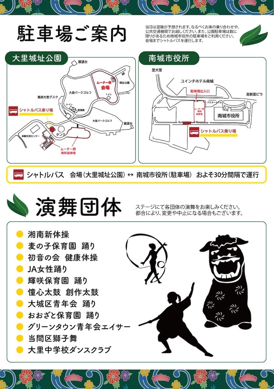 鬼ムーチー発祥の地と言い伝えられている南城市大里。健康長寿や厄よけを祈願する風習として知られている「ムーチー」を、多くの人に親しんでもらおうと地域の人々によって企画されたお祭りだ。