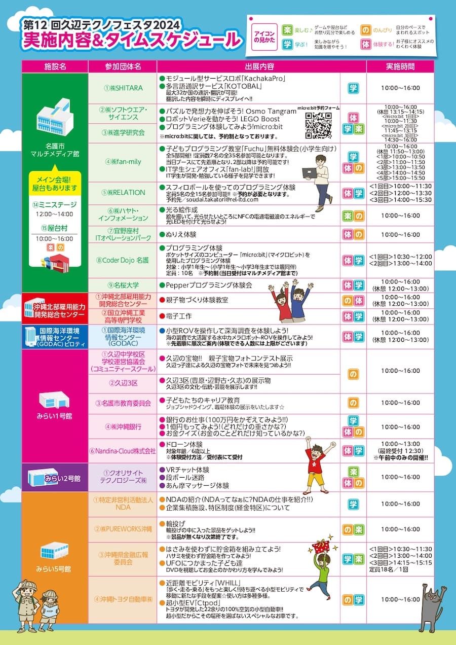 2024年11月30日(土)、名護市のマルチメディア館などで「第12回 久辺テクノフェスタ2024」が5年ぶりに開催される。入場無料。