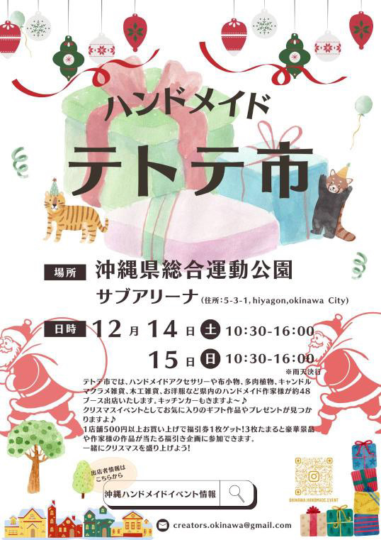 2024年12月14日(土)と12月15日(日)の2日間、沖縄県総合運動公園のサブアリーナにて「テトテ市」が開催される。