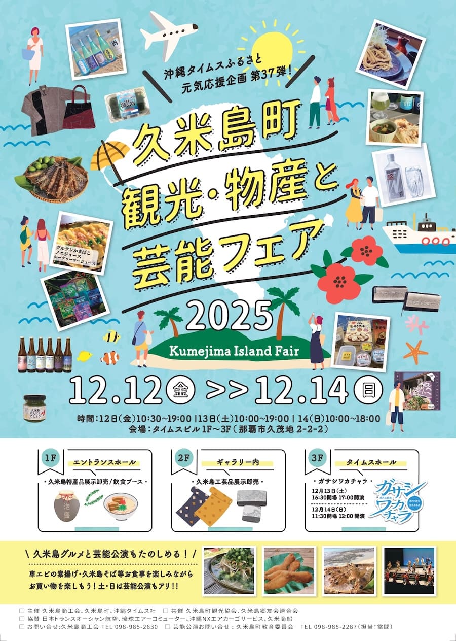 2025年12月12日(金)~12月14日(日)の3日間、那覇市のタイムスビルにて「久米島町 観光・物産と芸能フェア2025」が開催される。入場は無料。