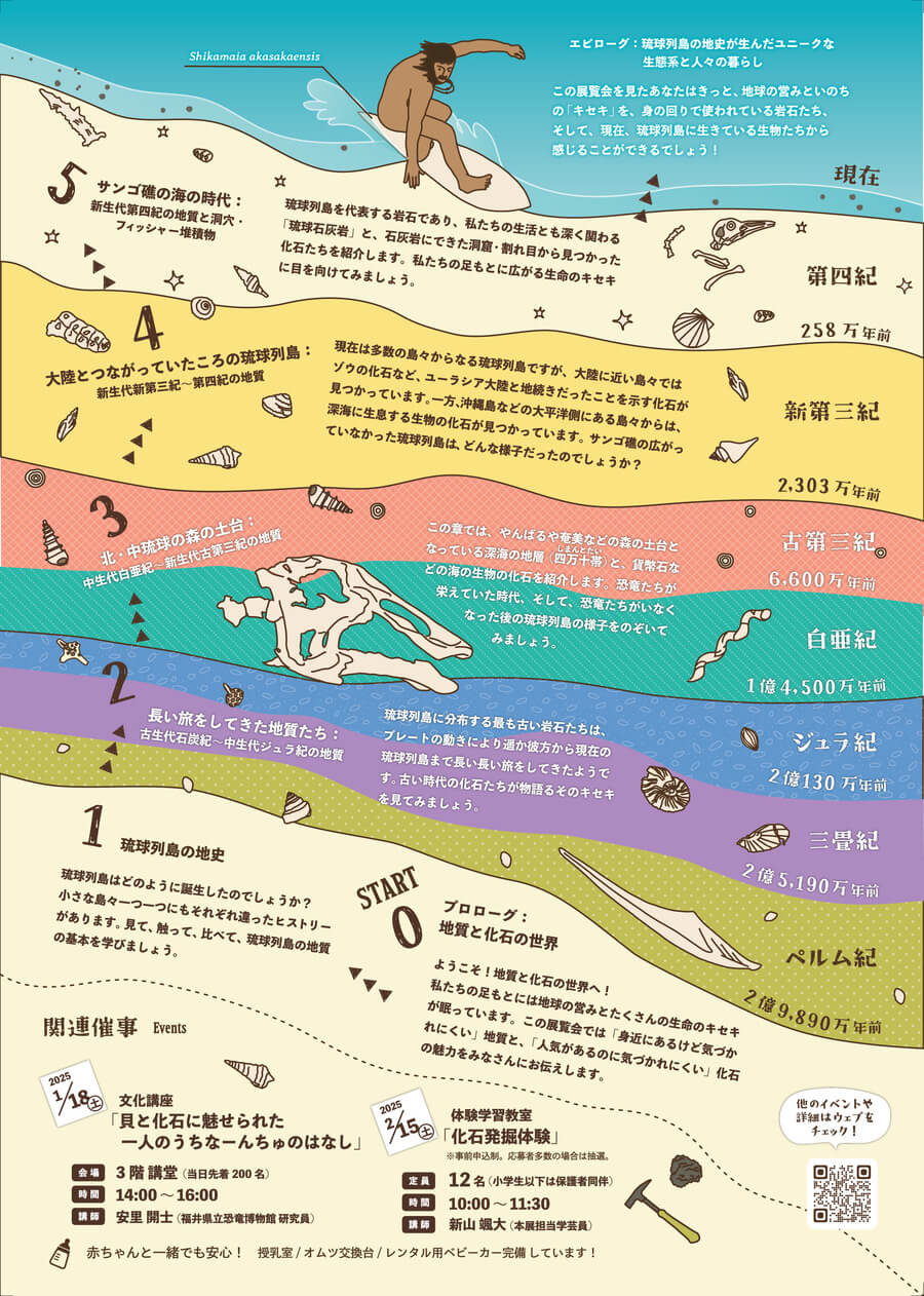 また、「琉球列島 地質・化石展」では、沖縄県出身で、現在は福井県立恐竜博物館で研究員として働いている安里開士さんによる文化講座や、化石発掘体験などの特別イベントも行われる予定だ。