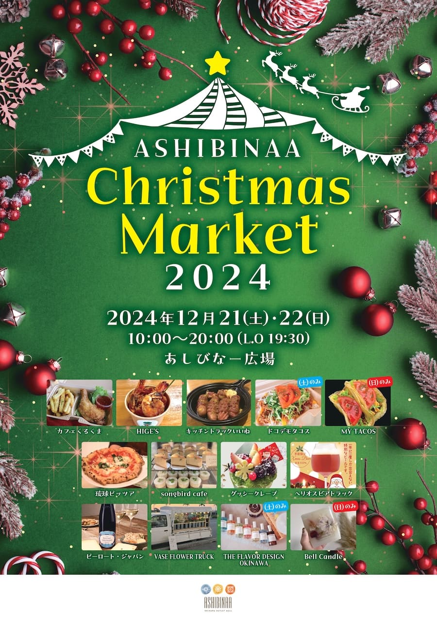 2024年12月21日(土)、22日(日)の2日間、豊見城市にあるアウトレットモールあしびなーにて「ASHIBINAA Christmas Market 2024」が開催される。