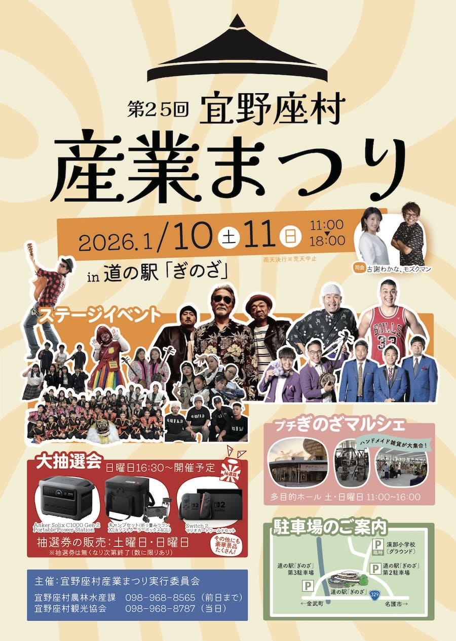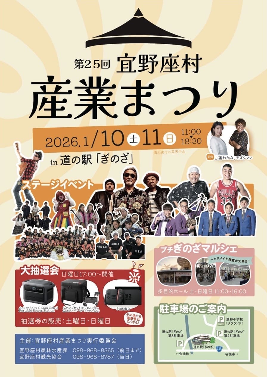 2026年1月10日(土)、11日(日)の2日間、道の駅「ぎのざ」にて「第25回 宜野座村産業まつり」が開催される。