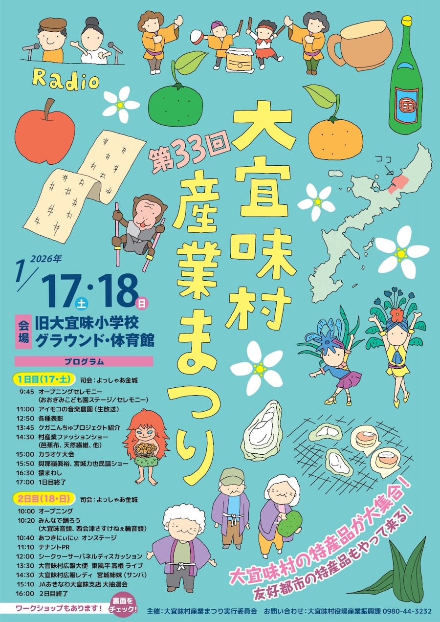 2026年1月17日(土)・18日(日)の2日間、旧大宜味小学校にて「大宜味村産業まつり」が開催される。