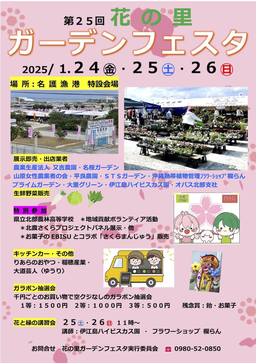 2025年1月24日(金)~1月26日(日)の3日間、名護市にある名護漁港にて「第35回 花の里ガーデンフェスタ」が開催される。