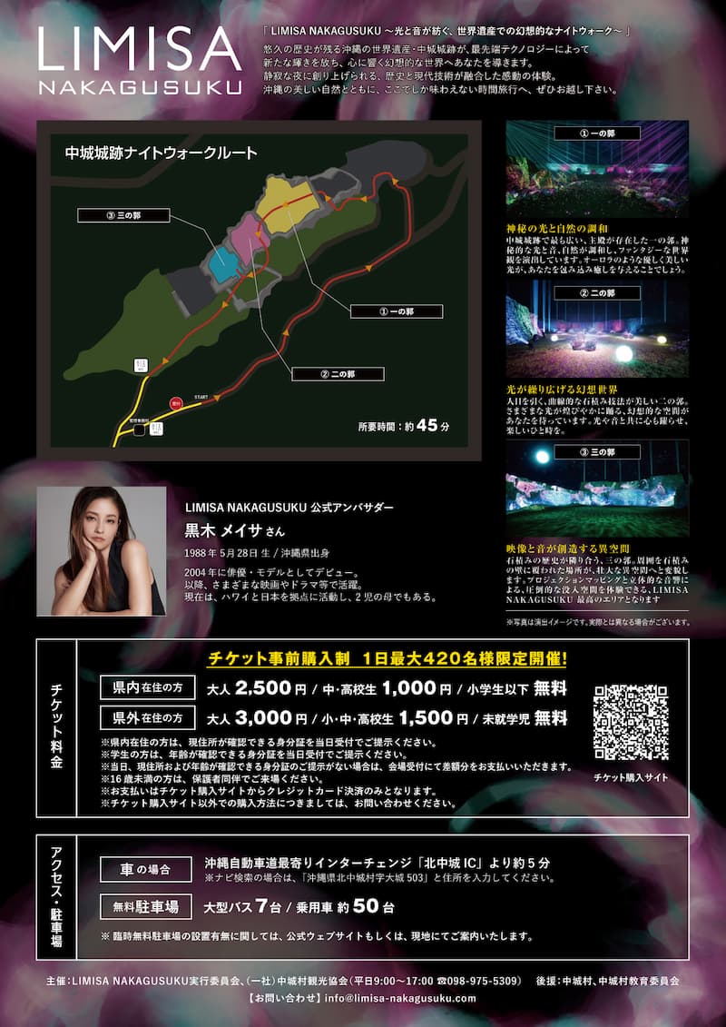 2025年3月1日(土)~5月25日(日)の期間中の金・土・日・祝日、世界遺産の中城城跡にて「LIMISA NAKAGUSUKU」が開催。俳優の黒木メイサさんがアンバサダーになっている。