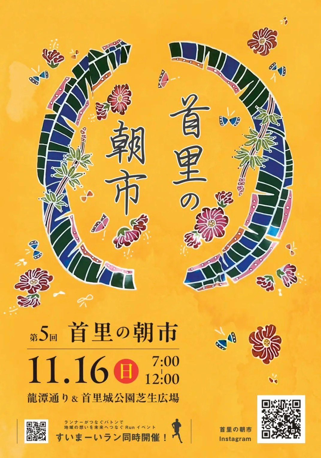 出店店舗などの詳細は公式インスタグラムで確認を。当日は首里城周辺を巡る駅伝スタイルのランイベント「すいまーいラン」も開催される。ぜひランナーを応援しながら、首里の朝を満喫しよう。
