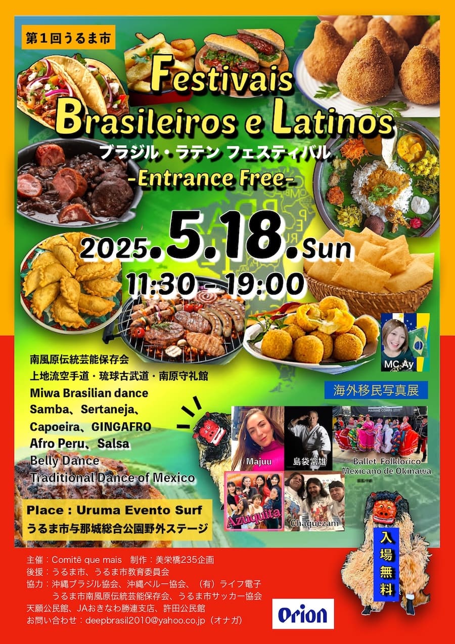2025年5月18日(日)、うるま市にある与那城総合公園野外ステージにて「第1回 うるま市 ブラジル ラテンフェスティバル」が開催される。記念すべき初開催だ。入場は無料。