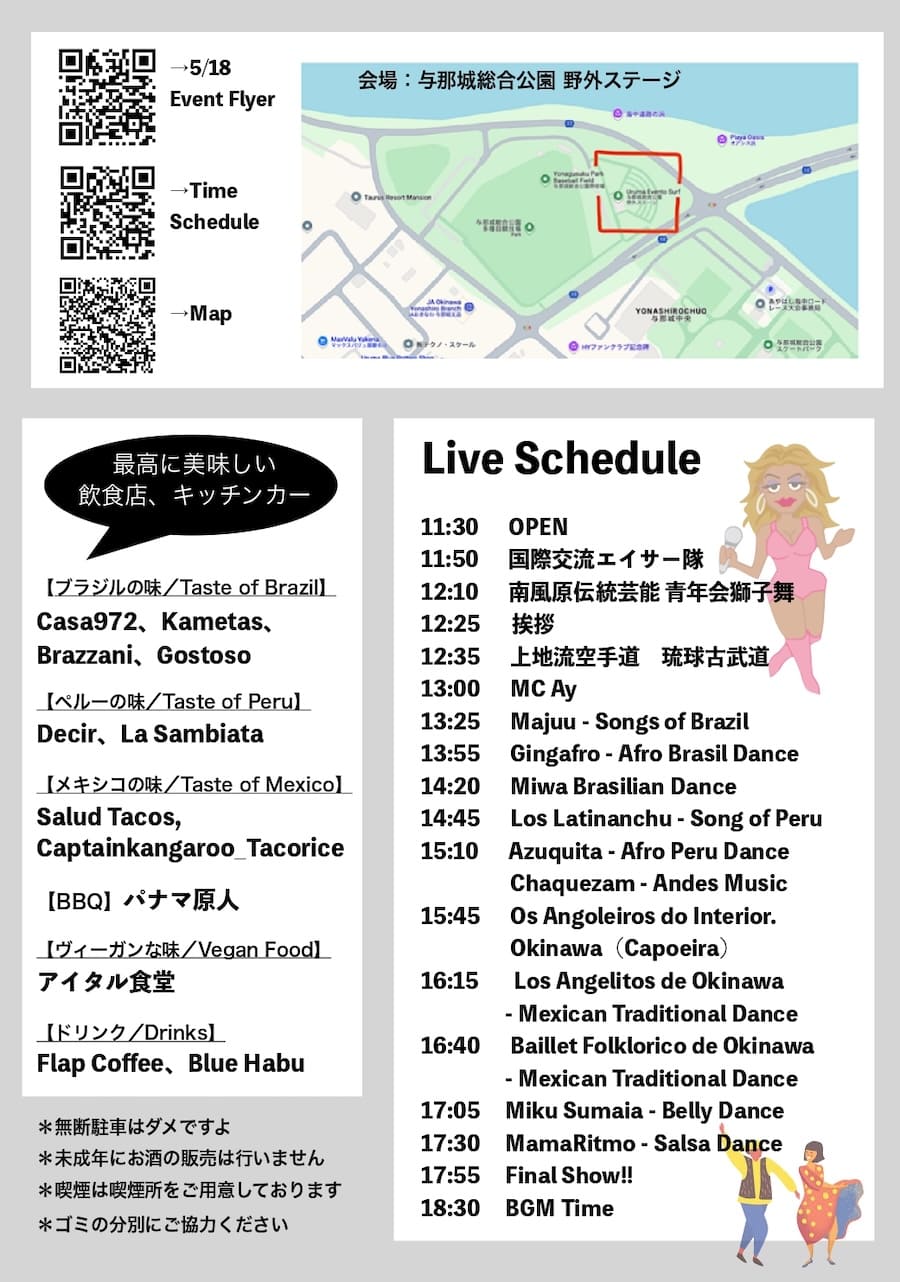 県内に在住するブラジル、ペルーなど南米にルーツを持つ人々による歌やダンスなどの文化芸能、エイサーや空手など沖縄の伝統芸能も披露される国際交流イベント。