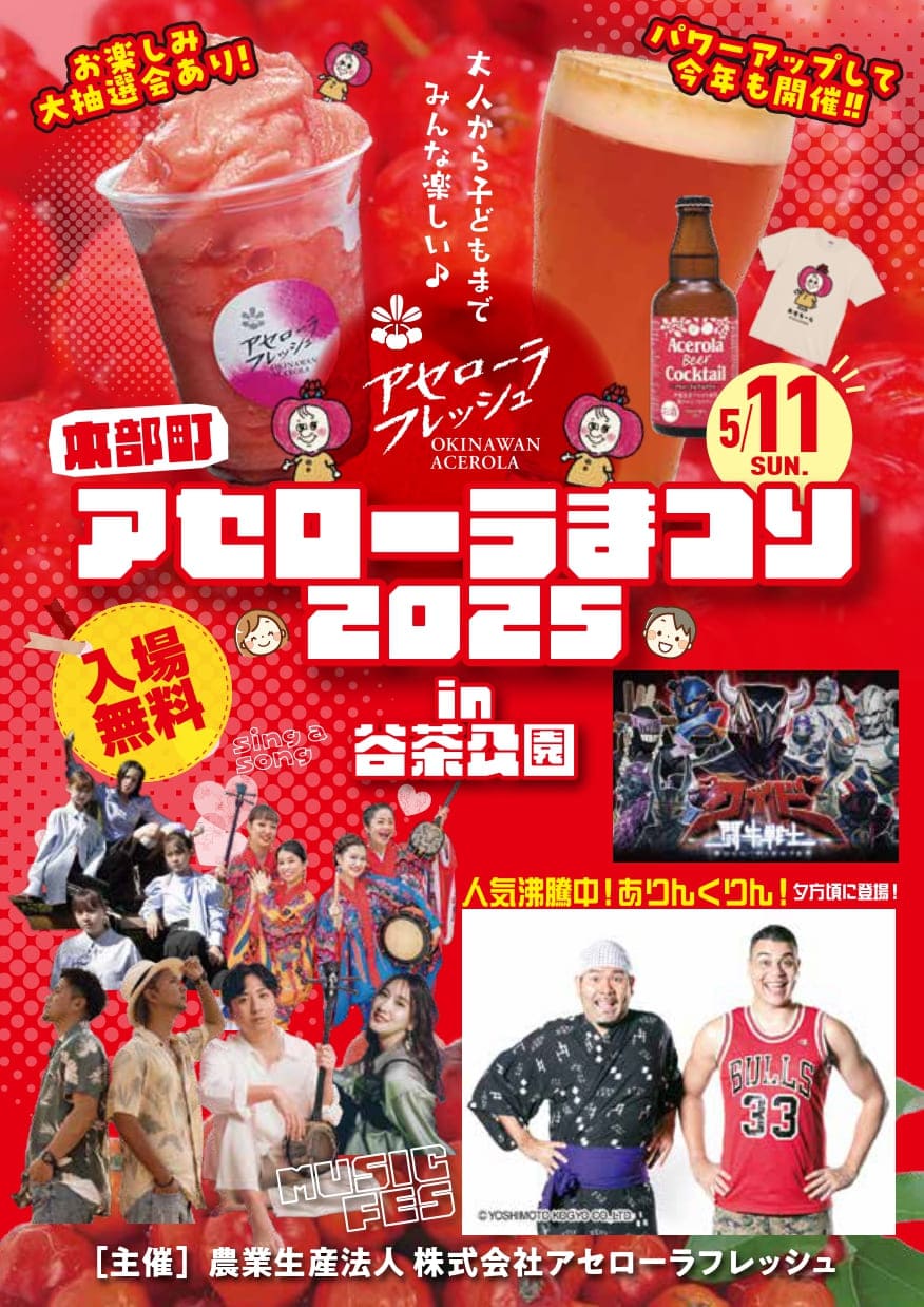 2025年5月11日(日)、本部町の谷茶公園にて「アセローラまつり2025」が開催される。