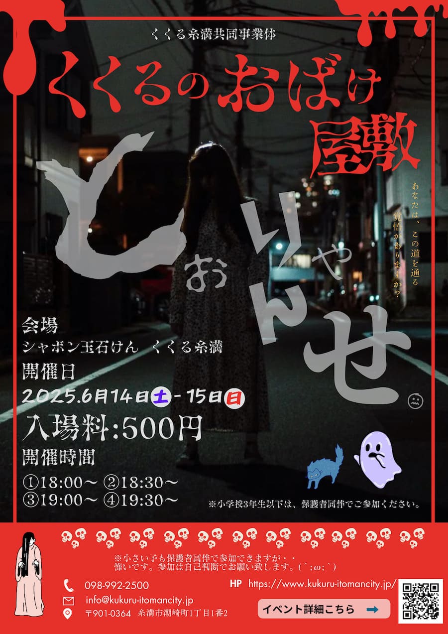 2025年6月14日(土)と15日(日)の2日間、シャボン玉石けん くくる糸満にて、くくるのおばけ屋敷「とおりゃんせ」が開催。