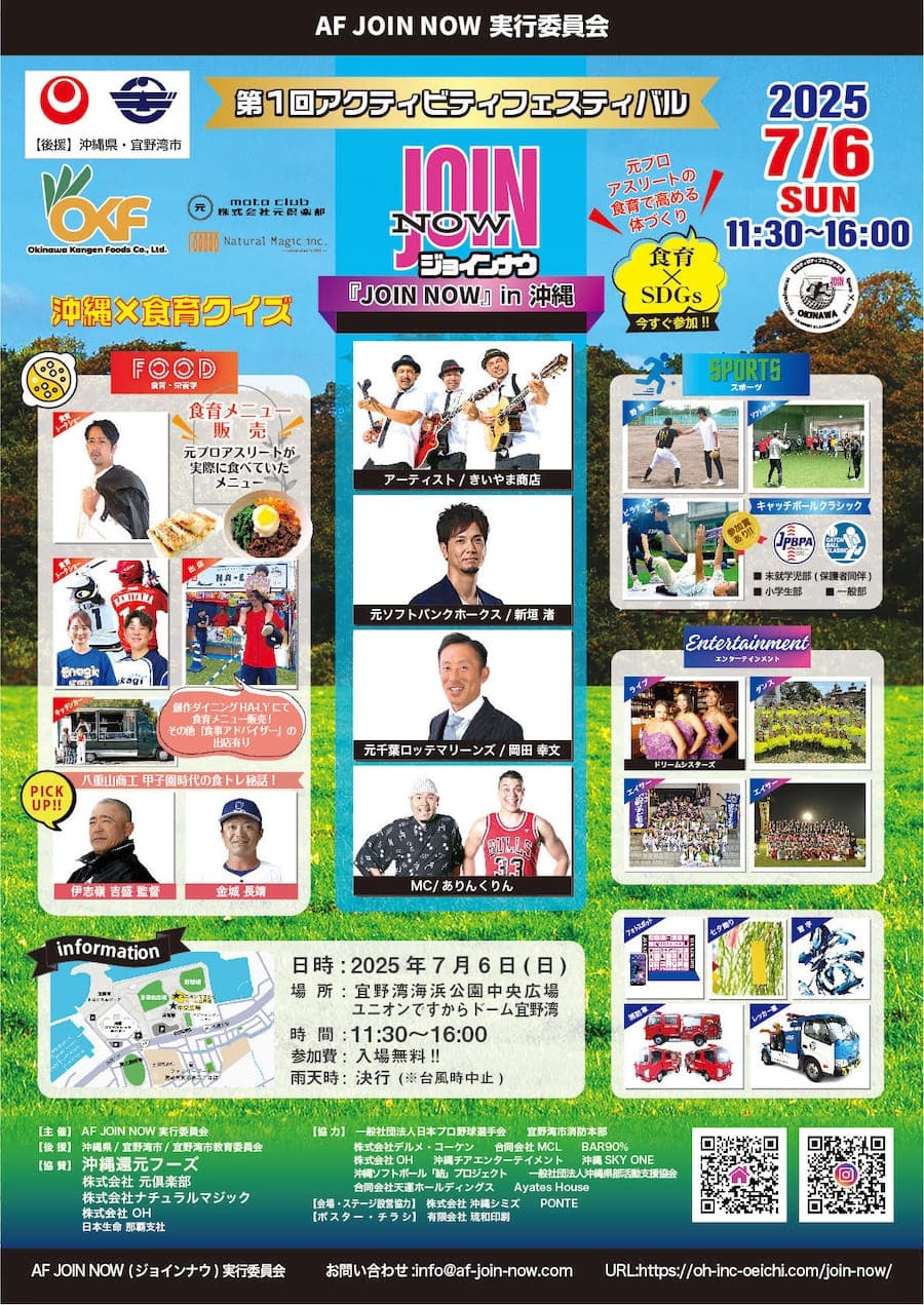 2025年7月6日(日)、宜野湾海浜公園中央広場とユニオンですからドーム宜野湾にて第1回アクティビティフェスティバル「JOIN NOW 2025」が開催される。
