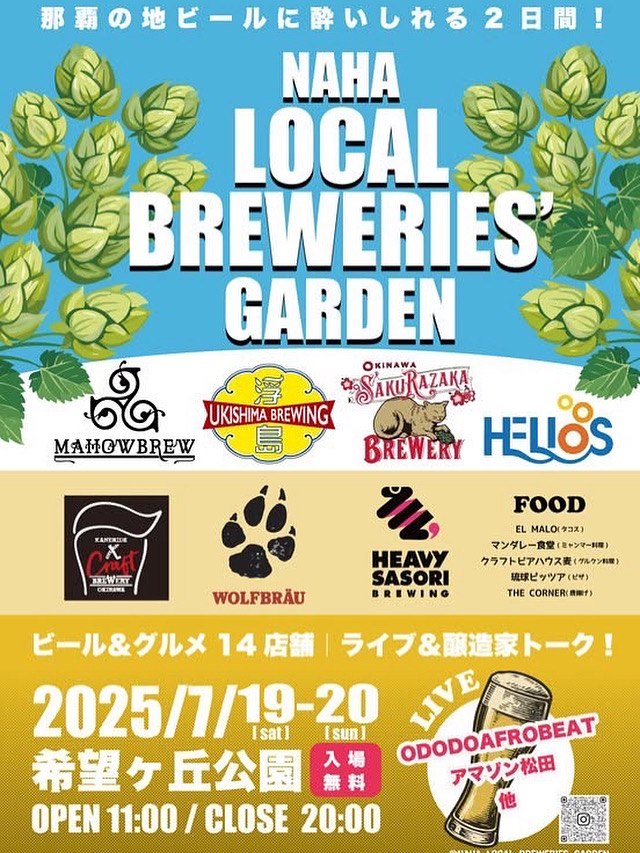 2025年7月19日(土)と7月20日(日)の2日間、那覇市にある希望ヶ丘公園にて「NAHA LOCAL BREWERIES’ GARDEN」が開催される。