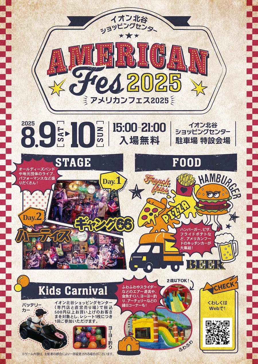 2025年8月9日(土)・10日(日)の2日間、イオン北谷ショッピングセンターにて「アメリカンフェス2025」が開催される。