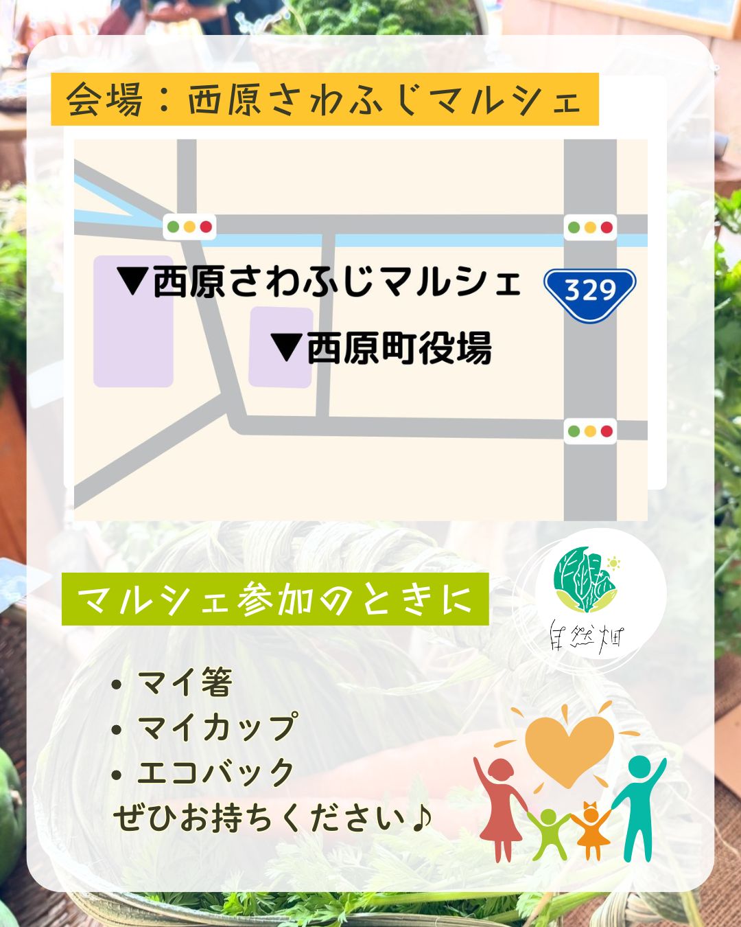 2025年10月18日(土)、西原さわふじマルシェにて「自然畑マルシェ」が開催される。入場無料。