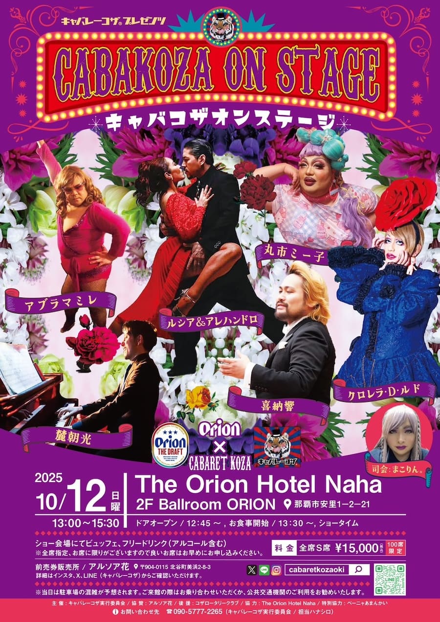 2025年10月12日(日)、オリオンホテル那覇(10月1日~「琉球オリオンホテル 那覇国際通り」)にてキャバレーコザがマチネ(昼公演)を開催する。タイトルは「キャバコザオンステージ」。