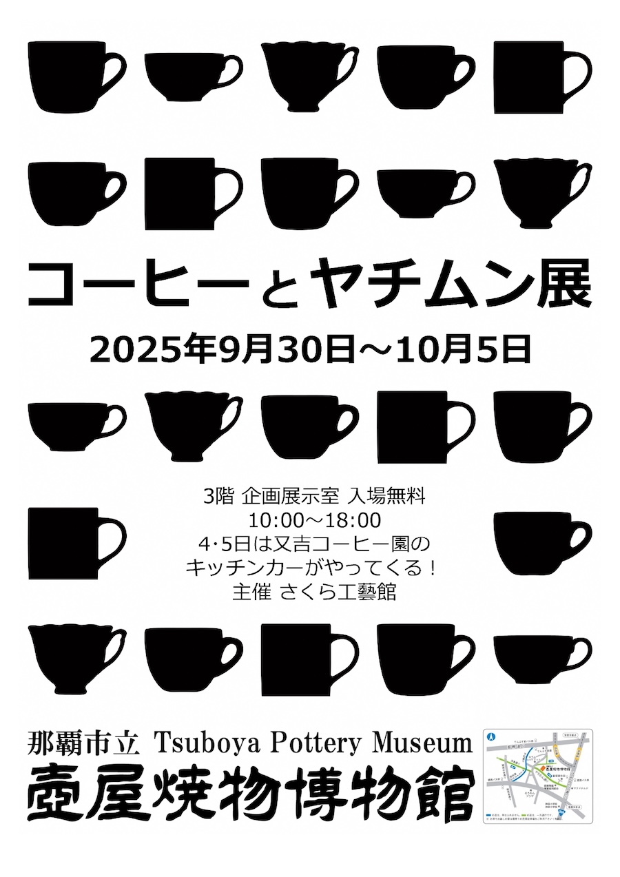 10月1日は「国際コーヒーの日」と制定されているのをご存知だろうか。そんな「国際コーヒーの日」にちなんで、2025年9月30日(火)~10月5日(日)の期間、那覇市壺屋焼物博物館で「コーヒーとヤチムン展」が開催される。
